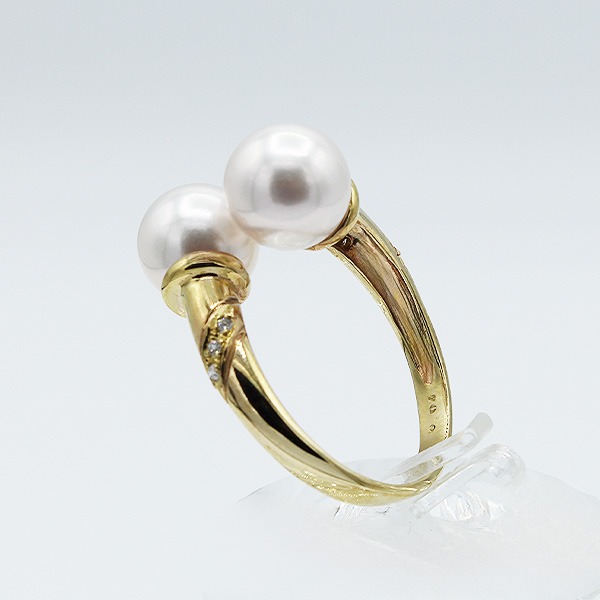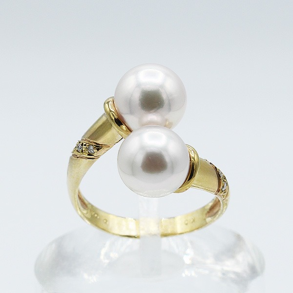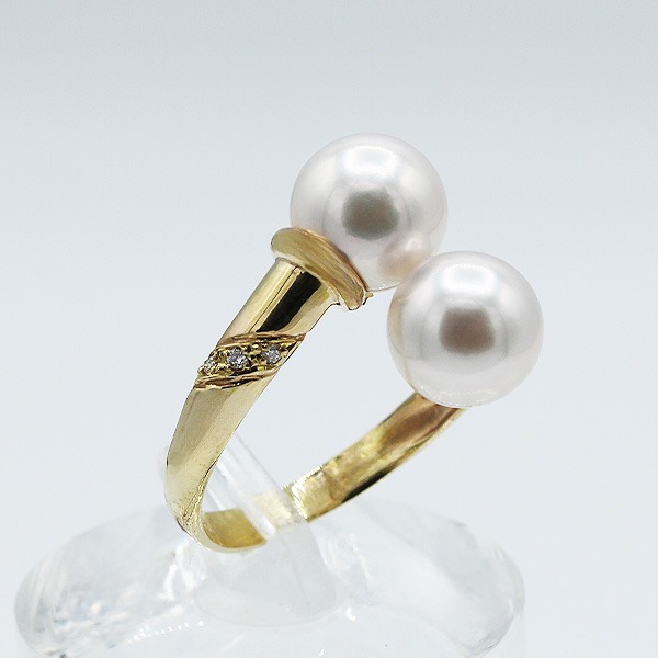 - アコヤ真珠 ツインパール リング 8.5mm 2個付 K10YG (15083) 真珠 アコヤ真珠 パール 指輪 リング パール ツインパール 大粒 K10 イエローゴールド ジュエリー アクセサリー ダイヤモンド 山梨県 甲斐市 BR-70