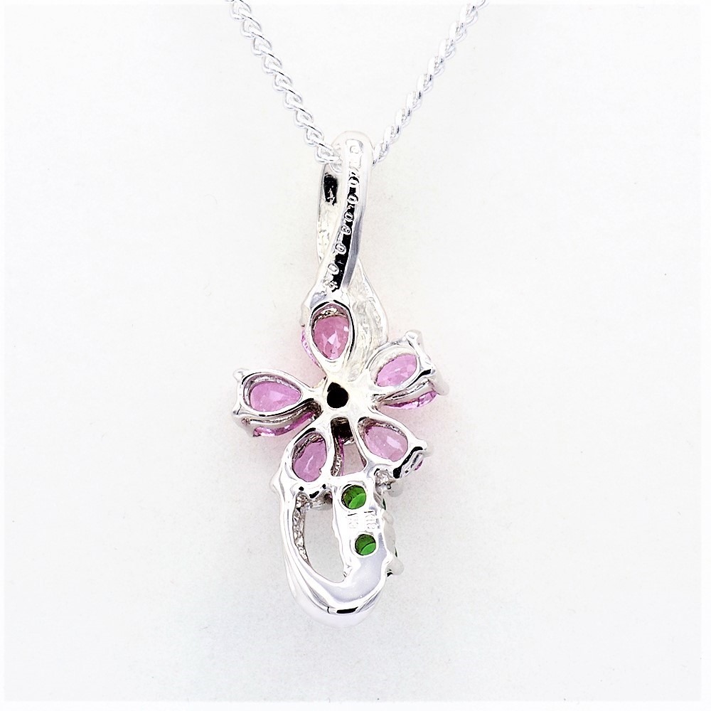 次へ ピンクサファイヤ 桜モチーフ ペンダント 0.70ct Pt900 (13523) ペンダント ネックレス ピンクサファイヤ サファイヤ プラチナ グリーンガーネット ダイヤモンド ジュエリー アクセサリー 山梨県 甲斐市 BR-88