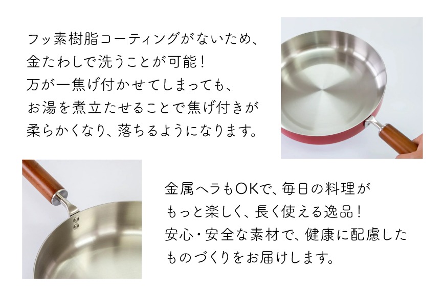 フライパン クーベルステンレスフライパン27cmソテーパン (レッド) キッチン用品 キッチン 料理 調理器具 IH ガス IH対応 [CAMPWILL 山梨県 韮崎市 20745179]