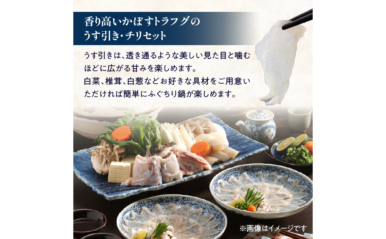 【E05027】かぼすトラフグ うす引き・チリセット(33cm皿)【12月~2月までお届け】