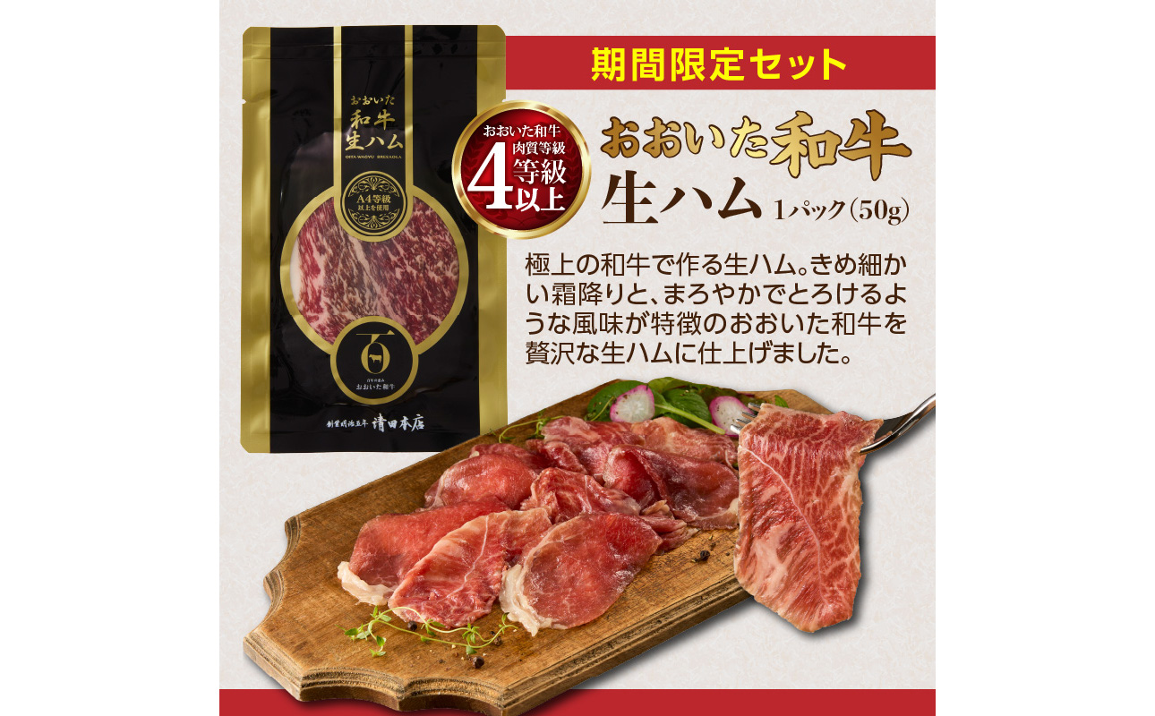 【A01149】【期間限定】おおいた豊後牛切り落し 200g×4P+おおいた和牛生ハム 50g×1P