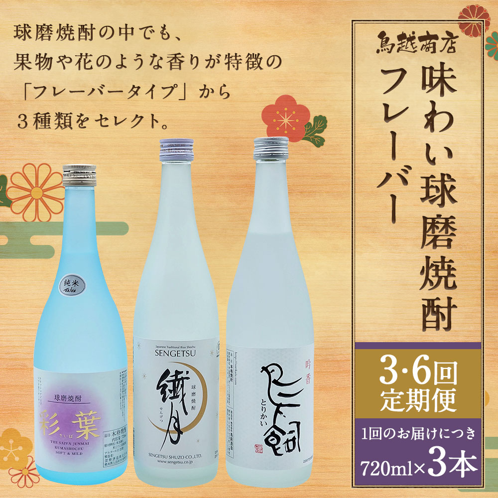 【ふるさと納税】<選べる定期便> 3か月 ・ 6か月 味わい球磨焼酎 フレーバー3種類セット 720ml 3本×3回 合計9本 / 720ml 3本×6回 合計18本 飲み比べ 25度 酒 お酒 焼酎 米焼酎 球磨焼酎 九州産 国産 送料無料