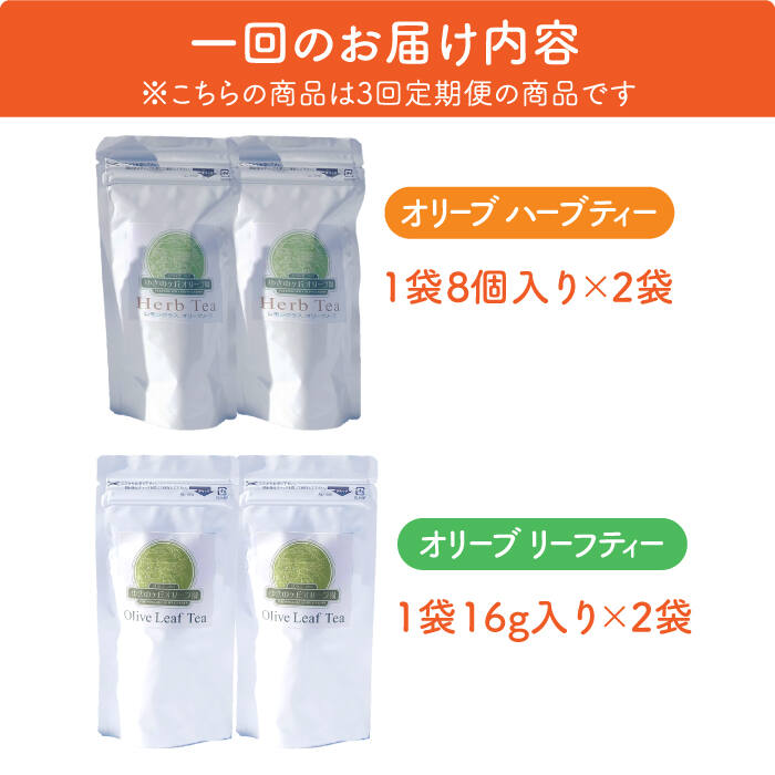 【ふるさと納税】【3回定期便】オリーブリーフティー&オリーブハーブティー(各2袋) 計12袋 長与町/ゆきのヶ丘オリーブ園 [EAV011] オリーブ レモングラス ハーブティー