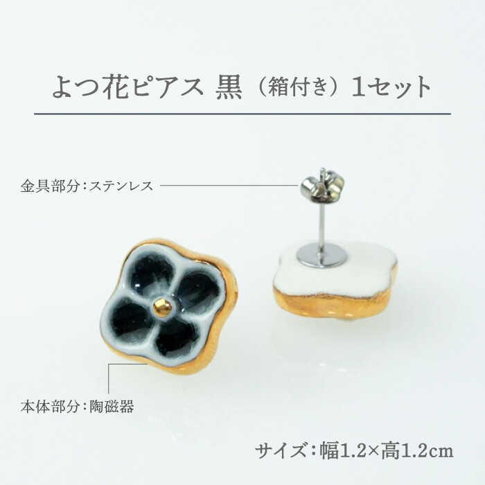 【ふるさと納税】【美濃焼】 よつ花 ピアス 黒 【七窯社】≪多治見市≫ 耳飾り アクセサリー おしゃれ [TAP050]