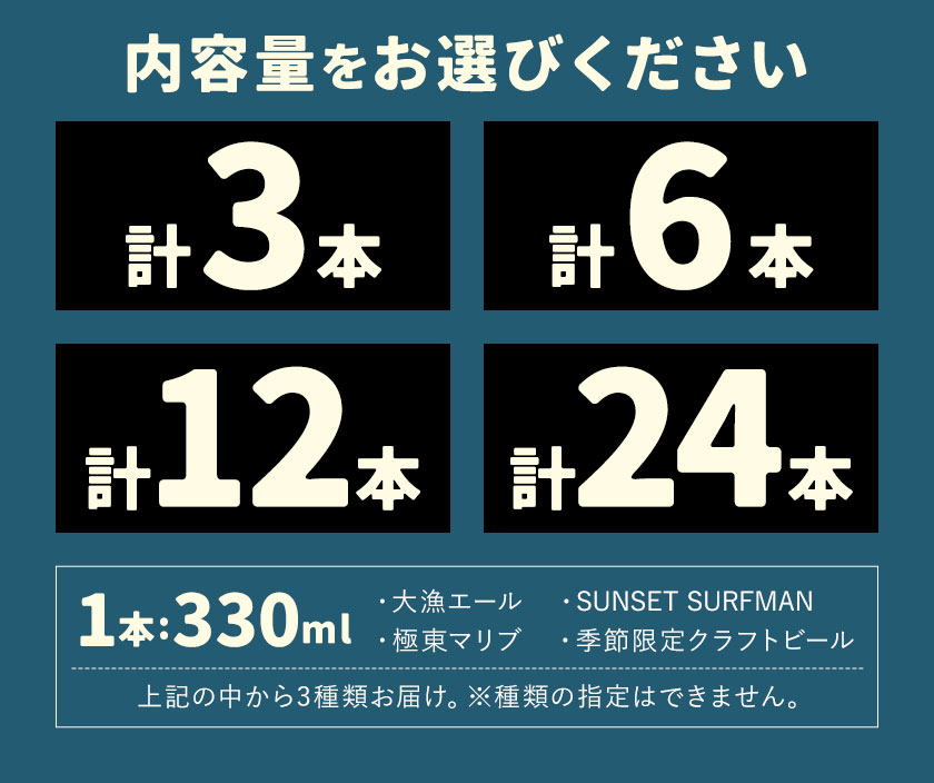 - 【ふるさと納税】クラフトビール 3種 醸造長おまかせ飲み比べセット 瓶330ml 3本 6本 12本 24本 千葉県 勝浦市 にある 醸造所より 直送 MAXIMUS.WORK 株式会社《30日以内に出荷予定(土日祝除く)》千葉県 勝浦市 クラフトビール ビール 飲み比べ