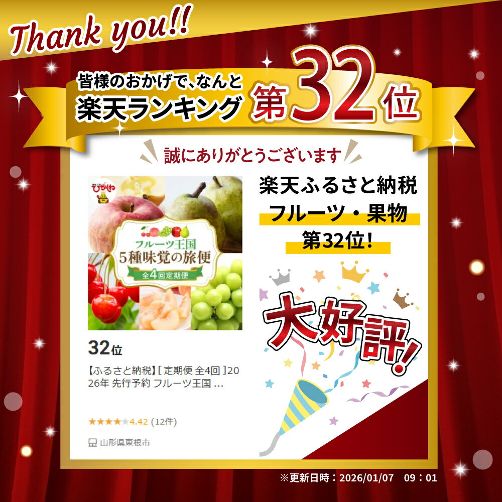 - 【ふるさと納税】[ 定期便 全4回 ]2026年 先行予約 フルーツ王国 5種味覚の旅便 | さくらんぼ 佐藤錦 桃 もも モモ 白桃 ぶどう シャインマスカット ラフランス りんご ふじりんご フルーツ 果物 くだもの 取り寄せ グルメ ご当地 産地直送 送料無料 山形 東根市