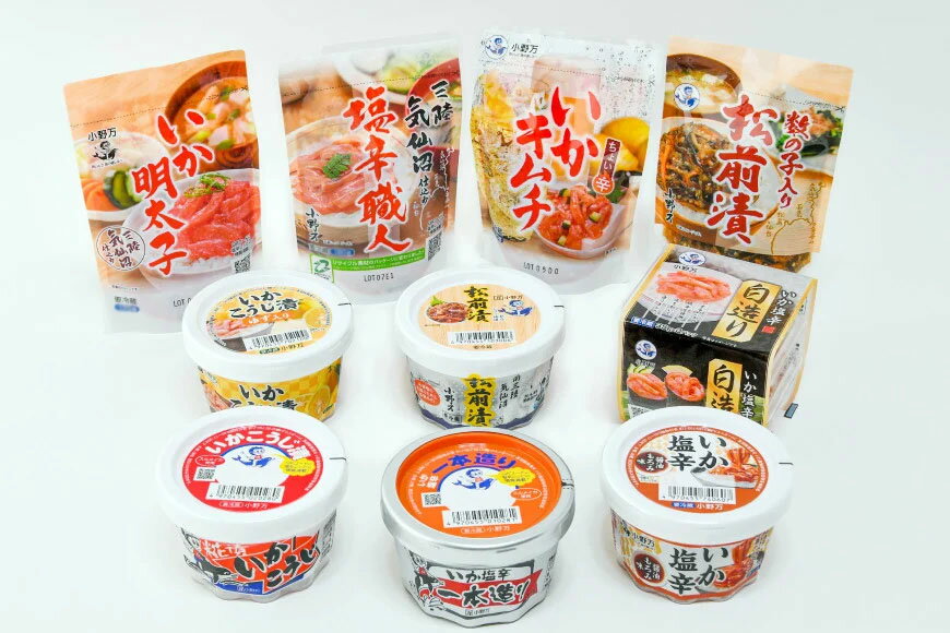 - 【ふるさと納税】 塩辛・珍味 10品セット [小野万 宮城県 気仙沼市 20565729] いか 塩辛 おかず イカ セット 詰め合わせ 酒の肴 おつまみ ご飯のお供 冷蔵