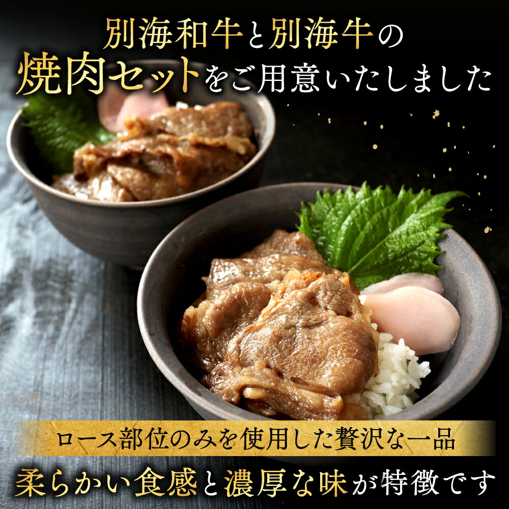 【ふるさと納税】 別海和牛 ロース & 別海牛 ロース の味付け 焼肉 食べ比べ (400g×2パック) ( ふるさと納税 牛肉 ふるさと納税 焼肉 ふるさと納税 焼き肉 ふるさと納税 ロース 牛 肉 バーベキュー 和牛 人気 国産 ふるさと 北海道 別海町 )