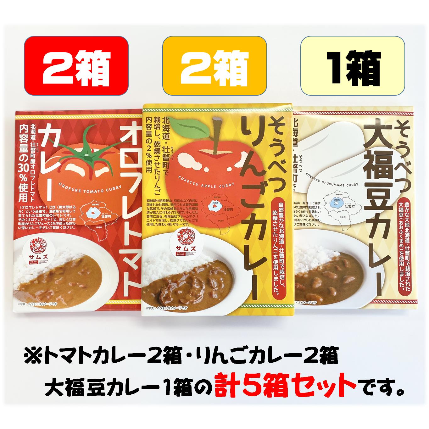 - 【ふるさと納税】≪ご当地レトルトカレー≫3種セット 計5箱 【 ふるさと納税 人気 おすすめ ランキング 北海道 壮瞥 大福豆カレー まめ りんごカレー オロフレ トマトカレー レトルト 保存食 贈り物 贈物 贈答 ギフト 大容量 詰合せ 北海道 壮瞥町 送料無料 】 SBTA044