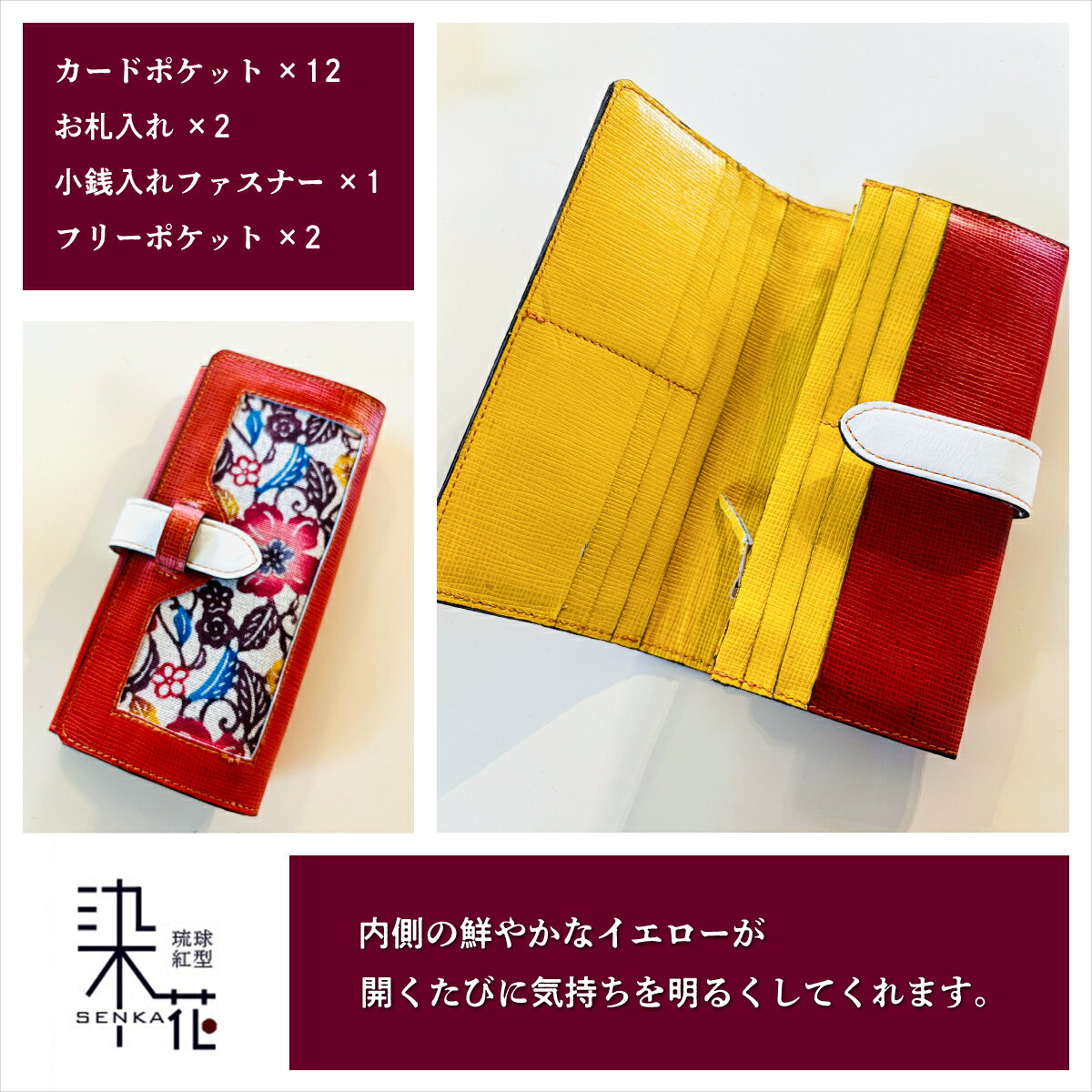 - 【ふるさと納税】本革長財布 | 紅琉 BINRYU アラヤプランニング株式会社 | 伝統工芸 びんがた 紅型 | 花柄 ハイビスカス オランジュ 赤 紅 黄 レッド イエロー | レザー 革 本革 牛革 本牛革 財布 長財布 カード入れ 小銭入れ ファスナー | 沖縄 宜野湾市 送料無料