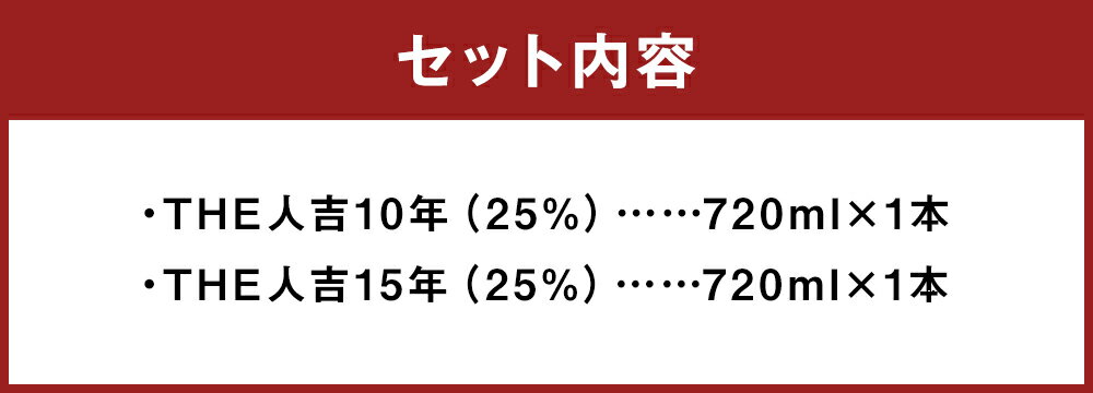 - 【ふるさと納税】「THE人吉10年」&「THE人吉15年」 飲み比べセット 1本あたり720ml 計1440ml 計2本(各1本) 化粧箱入り アルコール度数25% 国産米 お米 米麹 米こうじ 米焼酎 お酒 飲料 熊本県産 国産 熊本県 人吉市 送料無料