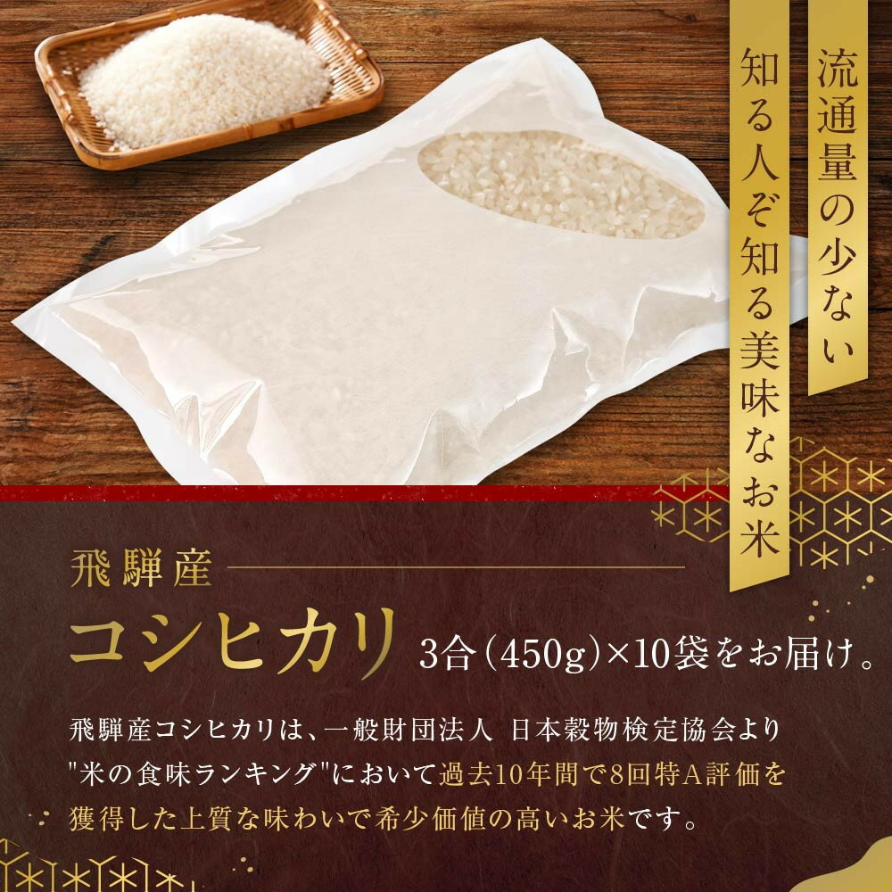 - 【ふるさと納税】令和7年度産 飛騨産コシヒカリ 白米(3合450g×10袋)| 特A評価獲得米 精米 米 もちもち 白飯 高山米穀協業組合 FA016