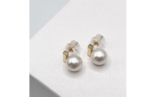 - 1684 K18YGアコヤ真珠ピアス 7.0mmUP