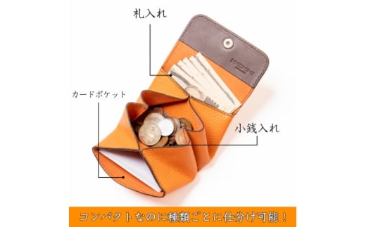 - HEDGE ハンドウォレット ふっくらフォルムとくるみボタンが可愛いミニ財布(オレンジ)たつの産牛革【1679815】