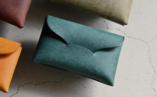 - 封筒のような プエブロレザーの名刺も入るシームレスカードケース 【ペトローリオ(青)】 F5J-1040