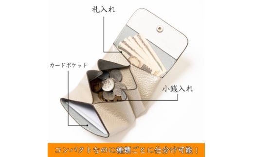 - 上品に輝くシルバーのミニ財布 ハンドウォレット たつの市産シュリンク型押し牛革 HEDGE【1679867】