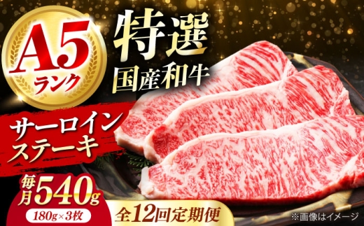 - 【全12回定期便】 和牛 国産和牛特上サーロインステーキ 180g×3枚 肉 お肉 国産 和牛 牛肉 ステーキ 冷凍 サーロイン サーロインステーキ 肉 お肉 国産 和牛 牛肉 ステーキ 冷凍 サーロイン サーロインステーキ 贈答 ギフト 贈り物 人気 定番 定期便 おすすめ オススメ ふるさと納税 特産品 産地直送 取り寄せ お取り寄せ 大阪府高槻市/株式会社ミートモリタ屋 [AOAI028]
