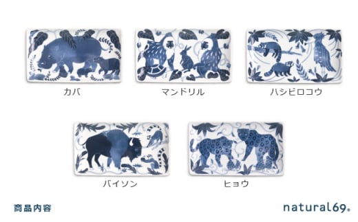 - 【波佐見焼】染付古波佐見 長角皿 5柄セット 食器 皿 【natural69】 [QA114]