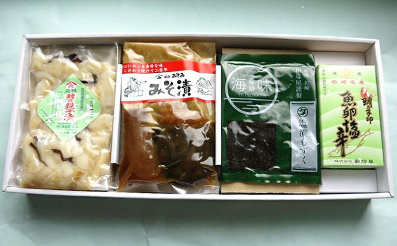 - 【ふるさと納税】越後柏崎名産品 4品(鱈の親子漬・塩漬もずく・みそ漬け・鯛の子印魚卵塩辛)セット[ZB503]【 新潟県 柏崎市 】
