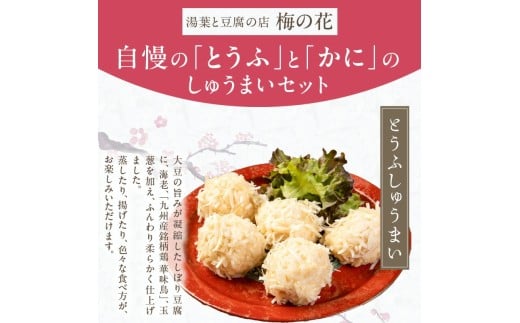 梅の花 とうふとかにのしゅうまいセット各10個入り_しゅうまい 食べ比べ セット 梅の花 名物 とうふしゅうまい かにしゅうまい 各 10個入り たれ からし 付き 化学調味料 合成保存料 合成着色料 無添加 大豆のコク 素材の味 惣菜 おかず 福岡県 久留米市 お取り寄せ 冷凍 送料無料_Cx215