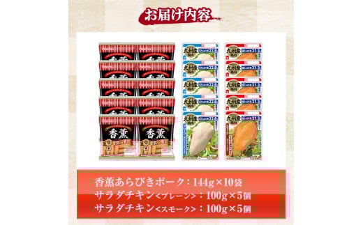 香薫あらびきポークとサラダチキン2種 <プレーン>+<スモーク>の詰合せ! 鹿児島アソートセットB 冷蔵 高タンパク ヘルシー ダイエット 筋トレ にもオススメ!【A-1779H】