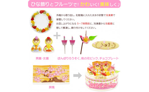 - 【日時指定必須】 卵 不使用 ひな祭り ケーキ 生クリーム 5号 イチゴ オレンジ キウイフルーツ 桃 ぶとう さくらんぼ パイナップル 雛人形 おひなさま お祝い