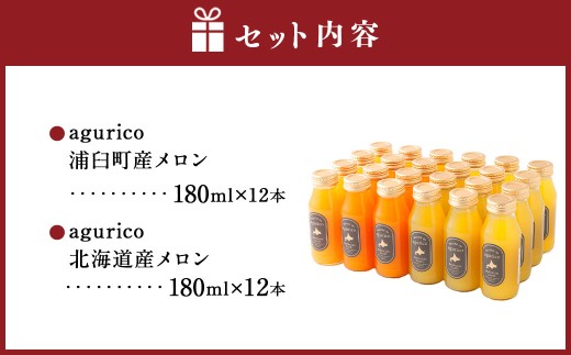 agurico メロン飲み比べセット180ml×24本 計4.32L 2種 メロンジュース ジュース キングメルティー フルーツ 果物 北海道 浦臼町