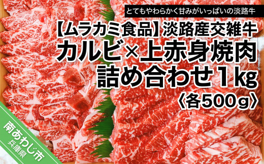 淡路産交雑牛カルビ×上赤身焼肉詰め合わせ 約1kg(各500g) 進物