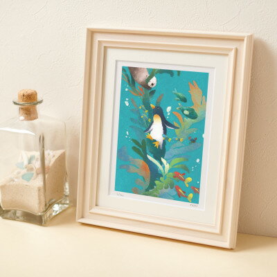 【ふるさと納税】イラスト作家「菜生」アートフレーム〈海藻であそぶ〉ペンギン【1675706】