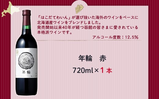 - 年輪 赤 720ml 1本 【ふるさと納税 人気 おすすめ ランキング ワイン わいん 赤 お酒 おさけ 酒 アルコール ギフト プレゼント 北海道 七飯町 送料無料】 NAX011