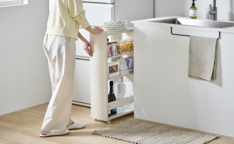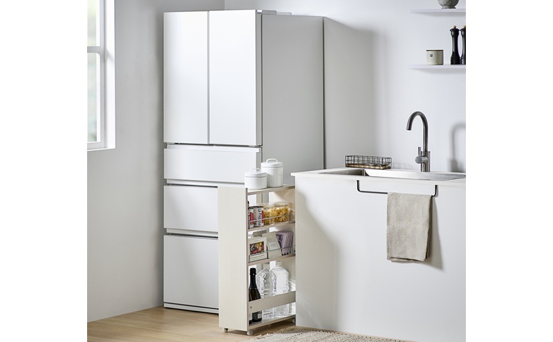 - キッチン隙間収納ラック KSRーL180 ホワイト 隙間収納 すきま収納 ラック 18cm キッチンラック スリム キャスター付き ストッカー 収納 おしゃれ パントリー 棚 薄型 冷蔵庫横 洗面所 キッチン収納 アイリスオーヤマ ロータイプ