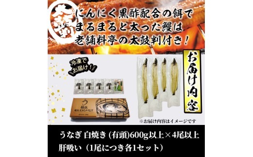 【訳あり】鹿児島県産!秘伝の特上スタミナうなぎ白焼き<計600g以上/4尾以上>肝吸いセット! c1-014
