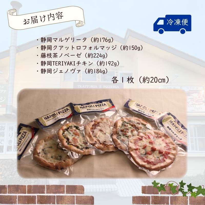 ご当地グルメ 石窯焼 冷凍 ピッツァ 5枚 セット 冷凍ピザ 各 1枚 × 5枚 20cm マルゲリータ ジェノベーゼ てりやき チキン ジェノヴァ クアットロフォルマッジ イタリアン ナポリ ピザ 手作り 窯焼き チーズ トマト バジル 藤枝市 静岡県