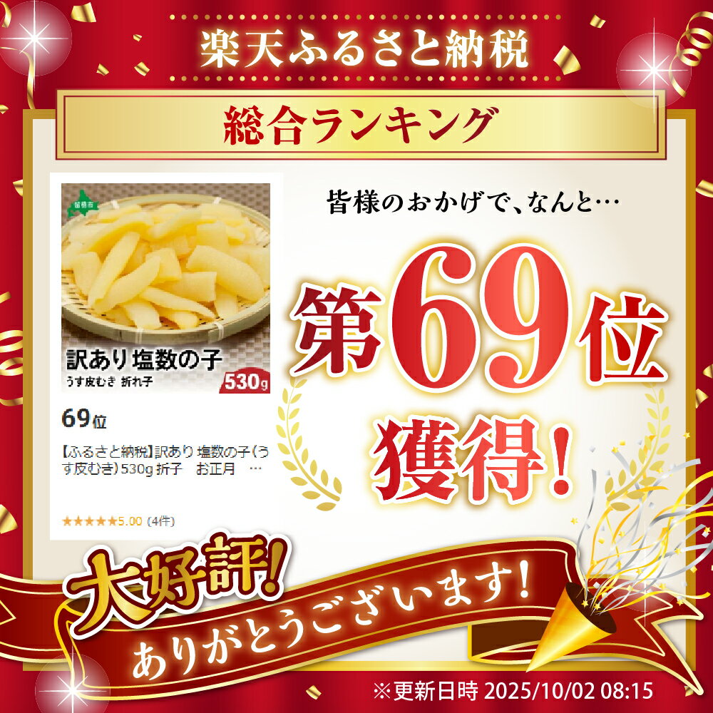 【ふるさと納税】選べる発送回数 訳あり 塩数の子(うす皮むき)530g 折子 お正月 人気 魚卵 高級 ごはんのお供 惣菜 おかず 珍味 海鮮 海産物 魚介 魚介類 おつまみ つまみ 北海道産 味付け カズノコ 味付数の子 折れ子 折れ 株式会社やまか 冷凍 おせち 定期便