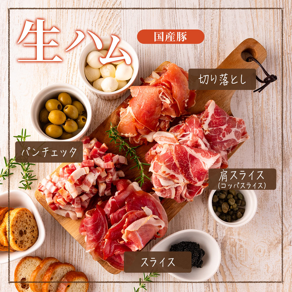 - 【ふるさと納税】内容が選べる<国産豚生ハムバラエティーセット(計450g/900g)>3種 4種 豚モモ 豚バラ 肩肉 スライス 切り落とし パンチェッタ 短冊 コッパスライス サラダ おつまみ 小分け ギフト 贈り物 プレゼント 年内発送 お歳暮 【MI270-pl】【株式会社プラス】