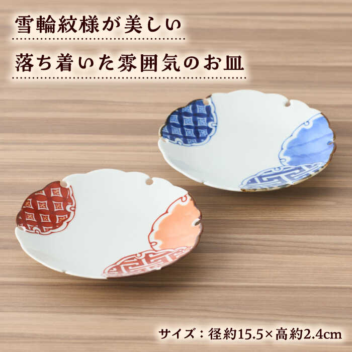 【ふるさと納税】【有田焼】染付と赤絵雪輪皿(地紋)径約15cm 2点セット / 和食器 和皿 小皿 多用皿 銘々皿 取り皿 七宝 錦 テーブルウェア ハレの日 / 佐賀県 / 株式会社深海三龍堂 [41APAD018]
