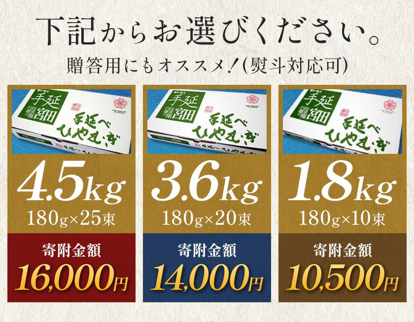 - 【ふるさと納税】【熨斗対応可能】ひやむぎ 冷麦 そうめん 素麺 手延べ 手延べひやむぎ 選べる 1.8kg 3.6kg 4.5kg 宮田製麺株式会社《30日以内に出荷予定(土日祝除く)》岡山県 浅口市 送料無料 麺 贈答用 ギフト お取り寄せ お歳暮 乾麺 麺類 備蓄 特産品 グルメ 小分け