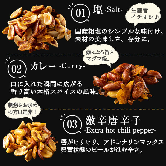 - 【ふるさと納税】マグマにんにく・フライドガーリックとピーナッツのおつまみ家飲み3種セット (各2袋×3種・合計6袋) ニンニク おつまみ スナック ガーリック ピーナッツ カレー味 本格スパイス 激辛 唐辛子【薩摩の薫農園】