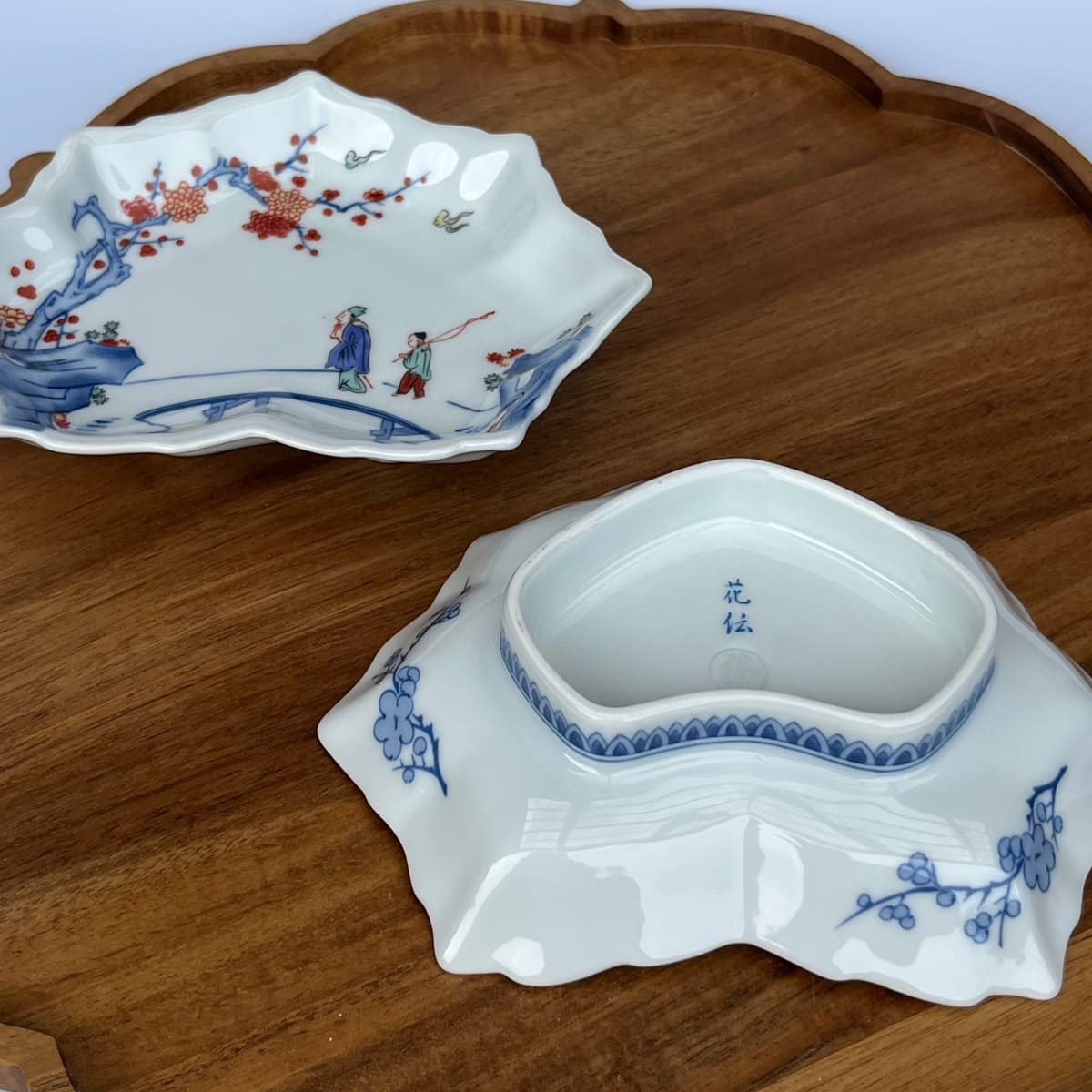 - 【ふるさと納税】有田焼 色絵梅花人物文木の葉形銘々皿 2枚 セット 【有田焼 花伝作】食器 器 うつわ 和皿 銘々皿 上品 日本食 梅 花 銘々皿 35000円 A35-379