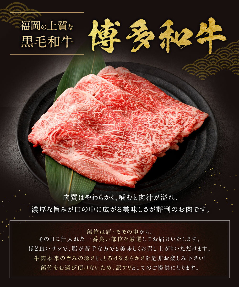 - 【ふるさと納税】<選べる内容量>訳あり!博多和牛 赤身 霜降り しゃぶしゃぶ・すき焼き用(肩・モモ) 400g×1パック・計800g(400g×2パック) 黒毛和牛 牛肉 お肉 肩肉 もも肉 サシ すきやき 冷凍 福岡県産 国産 九州 福岡県 直方市 送料無料