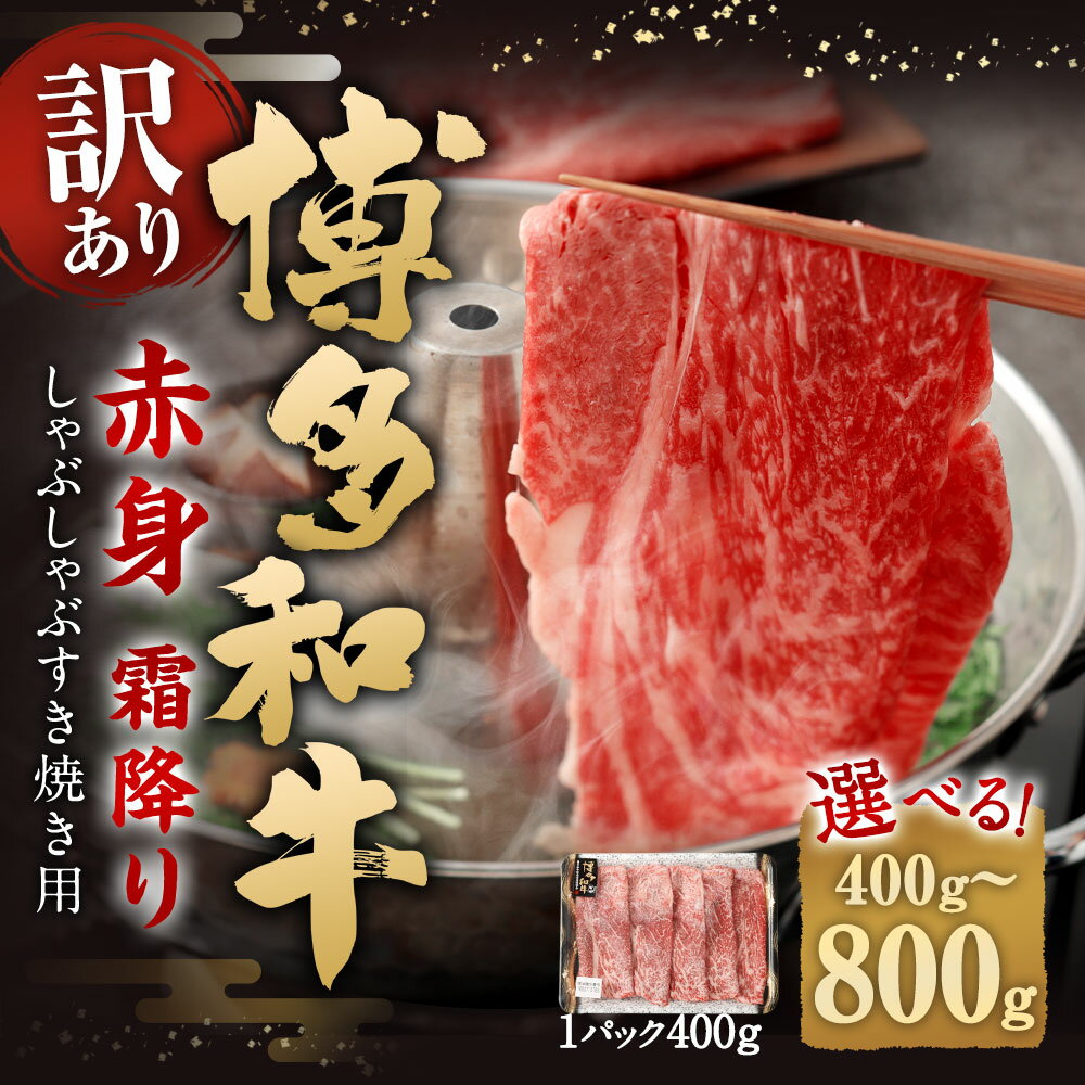 【ふるさと納税】<選べる内容量>訳あり!博多和牛 赤身 霜降り しゃぶしゃぶ・すき焼き用(肩・モモ) 400g×1パック・計800g(400g×2パック) 黒毛和牛 牛肉 お肉 肩肉 もも肉 サシ すきやき 冷凍 福岡県産 国産 九州 福岡県 直方市 送料無料