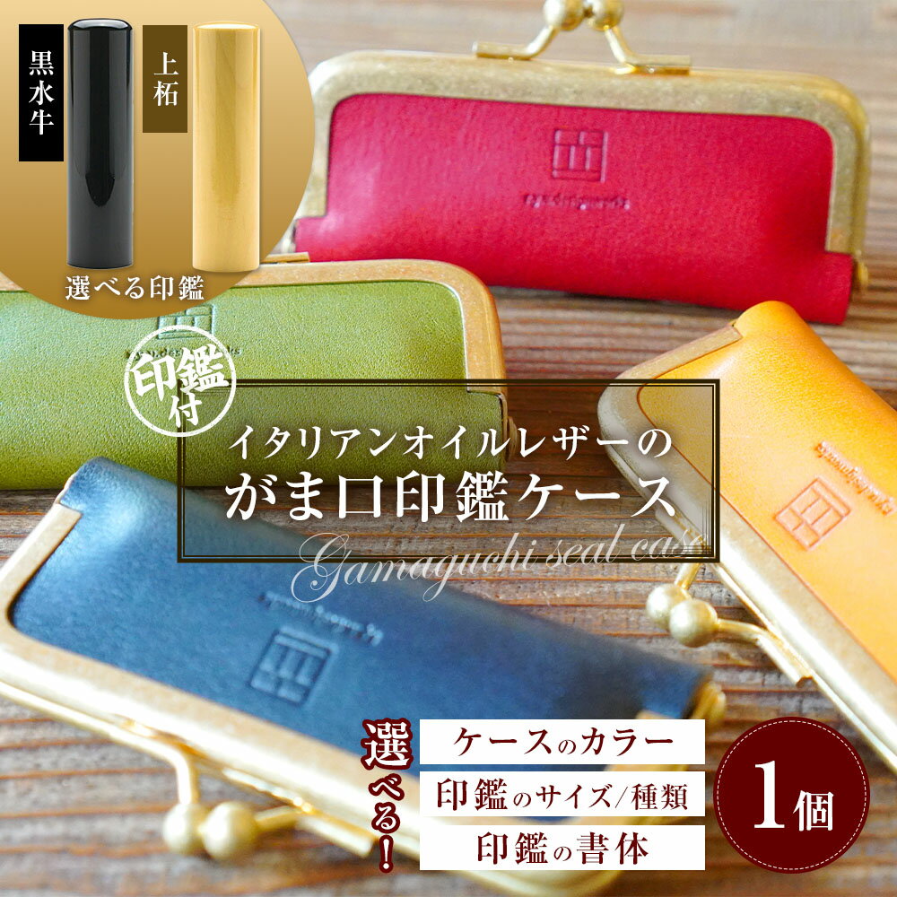 【ふるさと納税】<選べるカラー・サイズ・印材>実印 イタリアンオイルレザーのがま口印鑑ケース付き グリーン・イエロー・レッド・ネイビー 13.5mm・15mm 黒水牛 上柘 てん書体 印相体 楷書体 古印体 行書体 隷書体 ハンコ 銀行印 認印 送料無料
