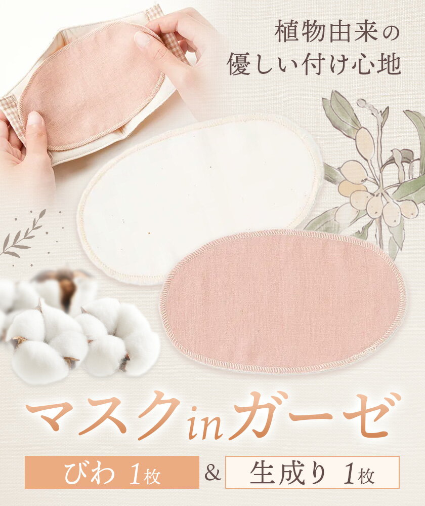 - 【ふるさと納税】マスク用ガーゼ マスク イン ガーゼ 2枚組 びわ 生成り 有限会社アルデバラン 《45日以内に出荷予定(土日祝除く)》 岡山県 笠岡市 マスク ガーゼ オーガニックコットン ダブルガーゼ 繰り返し使用可能 送料無料