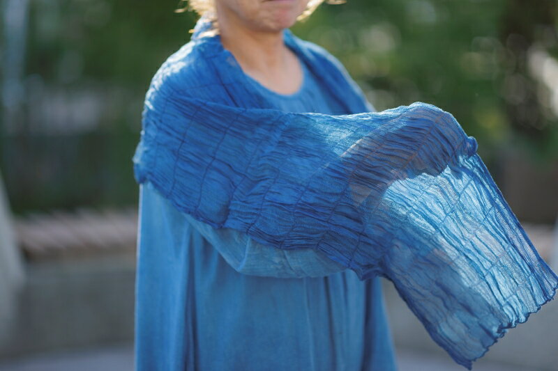【ふるさと納税】《数量限定おまけ付き》藍染めストール(絹)乾燥葉染め ならは藍染め会【ストール 藍染め 乾燥葉染め 絹 シルク ギフト 贈り物 プレゼント 藍 手作り 手染め ハンドメイド 鮮やか 福島 楢葉 ファッション 母の日 父の日 敬老の日 プレゼント 】