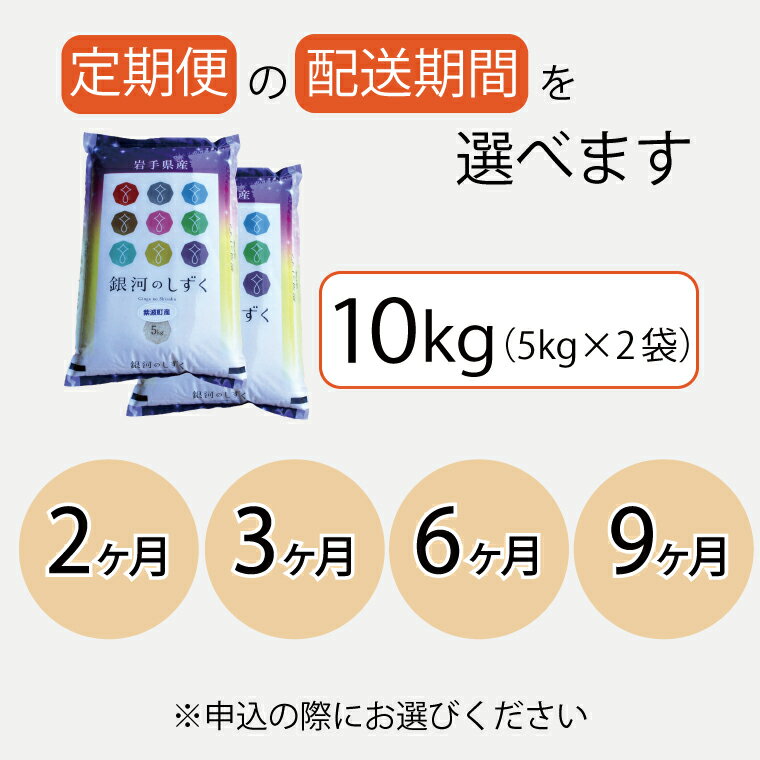 - 【ふるさと納税】\選べる 定期便/ お米 10kg (5kg×2袋) 精米 白米 令和7年産「銀河のしずく」★ 特A受賞 米 ★\選べる 定期便 2ヶ月/3ヶ月/6ヶ月/9ヶ月/ 数量限定 米 コメ ご飯 ごはん ぎんがのしずく 新米 美味しい 人気 特A 岩手県 紫波町 ふるさと納税