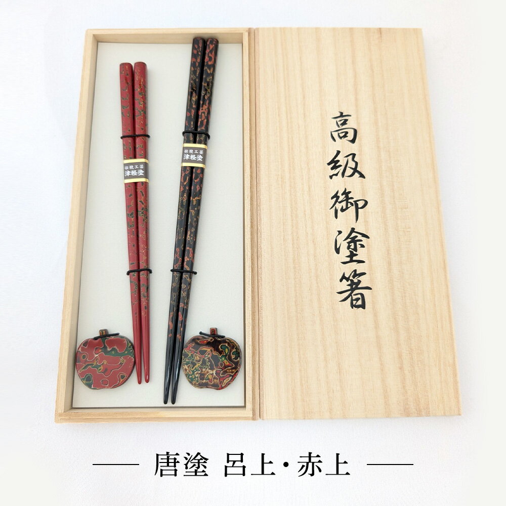 - 【ふるさと納税】箸 箸置き りんご箸置き・箸 セット (呂上・赤上/緑上・赤上) 【選べる組み合わせ】 工芸品 漆器 津軽塗