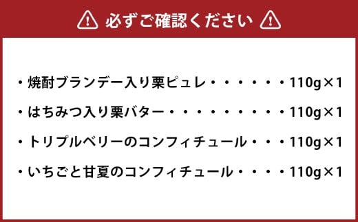 水上村で採れた栗といちごのコンフィチュール4種セット 計約440g 計4本 コンフィチュール ジャム コーディアル 焼酎ブランデー入り栗ピュレ はちみつ入り栗バター トリプルベリーのコンフィチュール いちごと甘夏のコンフィチュール セット 国産 九州 熊本県 水上村