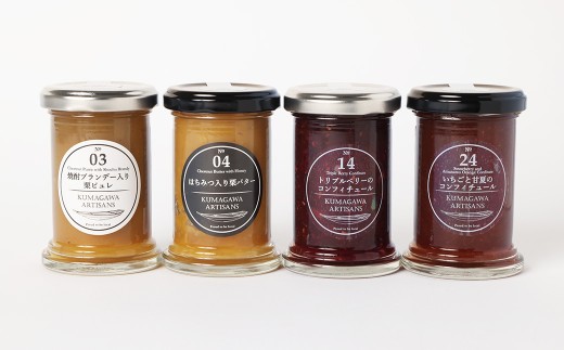 - 水上村で採れた栗といちごのコンフィチュール4種セット 計約440g 計4本 コンフィチュール ジャム コーディアル 焼酎ブランデー入り栗ピュレ はちみつ入り栗バター トリプルベリーのコンフィチュール いちごと甘夏のコンフィチュール セット 国産 九州 熊本県 水上村
