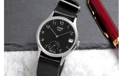 - JIOS OMI 日本製 クラシックスタイル クオーツ腕時計 メンズ レディース ウォッチ ユニセックス 男女兼用 Made in Shiga スモールセコンド シルバー×ブラック 栃木レザー NATOベルト (ブラック)