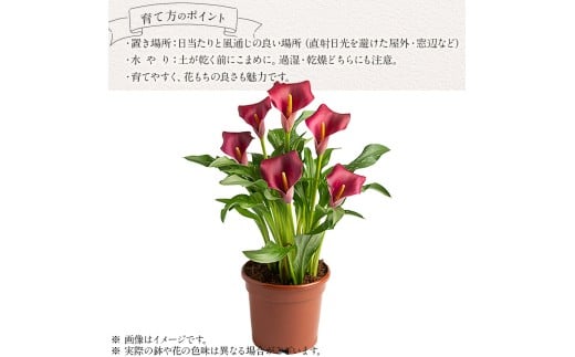 - 観賞用 花 カラー (5号) レッドシンフォニー | 鉢植え レッドシンフォニー オレンジプライド ザズー サンクラブ ヴァージンアート 園芸 6号鉢 赤 オレンジ ピンク 黄色 白 贈り物 ギフト 室内インテリア 観葉植物 店舗装飾 送料無料 栃木県 下野市
